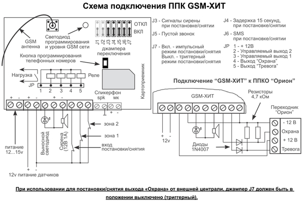 Технические характеристики. Максимальное количество телефонов оповещения - 2 Количество зон охраны - 2 Количество тревожных звонков (“дозвонов”) - 3 Напряжение внешнего питания - 10...15 В Максимальный ток потребления устройством (без внешних устройств) 0,09 А Габаритные размеры ППК "GSM-ХИТ" 65х32х90 мм Типы подключаемых датчиков - цифровые (контактные) Напряжение управления зонами устройства: - логическая единица - не менее 3 В - логический ноль - не более 0,8 В Максимальное напряжение управления зонами устройства - не более 18 В Сопротивление зон контроля (внутреннее) - не менее 47 КОм Сопротивление охранного шлейфа - не более 3 КОм Ток выхода выносного светодиода - не более 0,015А Ток выхода “Сирена” - не более 1А Длительность импульса постановки/снятия в пределах 2,5...5 секунд